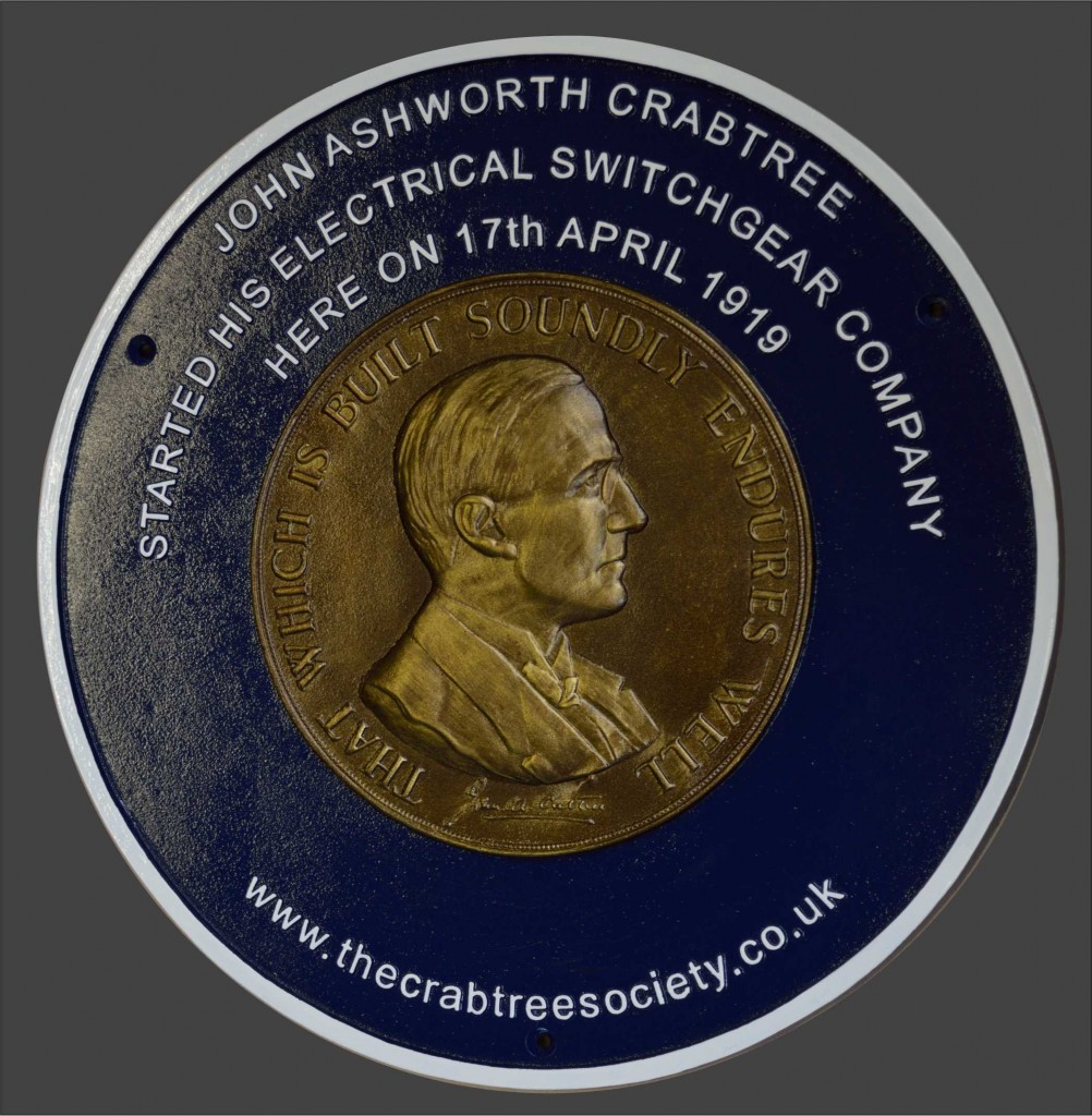 Hand made and sculptured a blue plaque custom made by Robin Lumley at Lumley Designs. Mounted on the old leather Works in Upper Rushall Street Walsall (now the Lyndon house Hotel), to honour business man